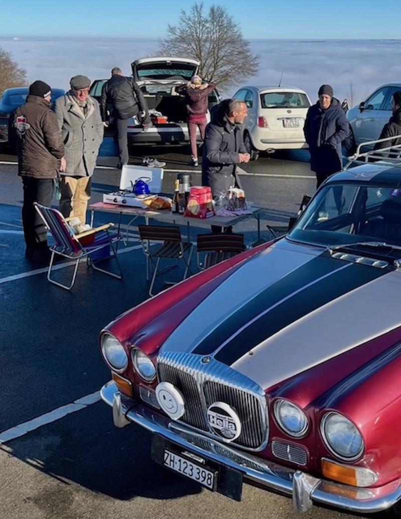 Die weiteste Anreise übrigens hatte ein Kollege mit seinem 1961er Jaguar Mk 2 3.4-Litre aus dem Emmental. Aktuell, also während ich hier diese Zeilen schreibe, ist er damit unterwegs an die französische Mittelmeerküste, eine gründliche Reinigung wird das Auto also so oder so noch erfahren müssen. Sollte sich aber die braune Pest tatsächlich am Gebälk des Jaguar festbeissen, sitzt der Besitzer an der Quelle, um die Spuren des Winters wieder zu beheben: Er ist Jaguar-Mechaniker.