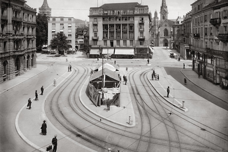 Ist ihnen auch schon aufgefallen, dass in alten Stadtansichten, solchen des späten 19. und des frühen 20. Jahrhunderts, oft ganze Strassenzüge menschenleer sind? An wichtigen Knotenpunkten sind kaum Menschentrauben oder Fahrzeugkolonnen zu sehen, nur einige Fuhrwerke, eine wartende Strassenbahn oder vereinzelte, verstreute Gestalten? Dass die wenigen Menschen, die sich auf der Fotografie ausmachen lassen, allesamt statisch scheinen, stehen oder sitzen? Nun, ich vermute, dies hat mit der damaligen Fototechnik zu tun, respektive mit der Belichtungszeit. Denn ein Schnappschuss war oft gar nicht möglich.