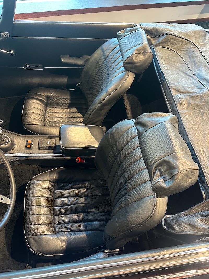 Originales Interieur eines Jaguar E-Type V12 S3 OTS, er duftet selbst als offener Wagen sehr intensiv.