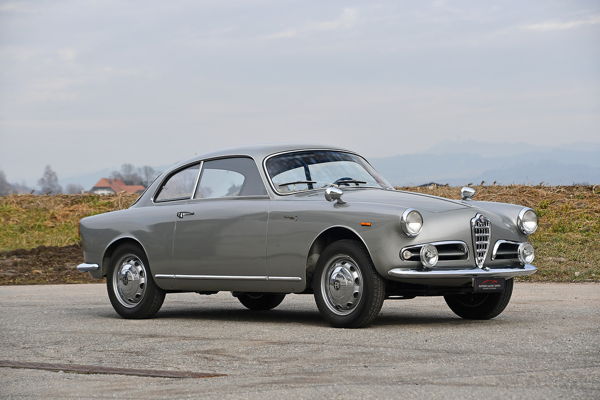 Die im April 1954 vorgestellte Giulietta war eines der erfolgreichsten Alfa Romeo Modelle aller Zeiten. Mit dem drehfreudigen 1.3-Liter 4-Zylindermotor und gutem Fahrwerk war die kleine Italienerin - egal ob als Limousine, Coupé oder Cabriolet – eines der sportlichsten Fahrzeuge seiner Klasse. Das angebotene Coupé stammt aus der 750B genannten erste Serie, wurde gemäss der Garage Jan rue de Maupas in Lausanne am Turiner Salon bestellt und am 19. Juni 1957 in Chiasso verzollt. 1964 wurde das hübsche Coupé vom Einlieferer übernommen, welcher dieses - als Mitglied der Ecurie de la Côte in Morges – in den folgenden zwei Jahren für verschiedene Bergrennen und Rallyes einsetzte. Ab 1966, nach der Übernahme des Familienbetriebes, fuhr er keine Rennen mehr und 1971 wurde die Giulietta mit der Absicht diese irgenwann einmal zu restaurieren im Trockenen geparkt. 1995 war es dann soweit: Die Giulietta wurde im eigenen Betrieb komplett demontiert und während der kommenden 10 Jahre komplett restauriert und revidiert. Der „Matching-Numbers“ Originalmotor wurde revidiert, die Karosserie ab dem blanken Blech in Originalfarbe neu lackiert und die Innenausstattung erhielt neue Polster und Teppiche. Am 27. September 2005 wurde der Alfa Romeo schliesslich erstmals nach Fertigstellung als Veteranenfahrzeug vorgeführt. Seither wurde das „Julchen“ nur rund 8‘000 Kilometer gefahren und befindet sich daher immer noch in sehr gutem Allgemeinzustand. Dieses seltene Coupé – nur 2‘115 Fahrzeuge wurden 1957 gebaut – mit erst zwei Besitzern und nur 52‘000 gefahrenen Kilometern wird mit der letzten MFK als Veteranenfahrzeug im September 2024 an einen neuen Alfisto übergeben.