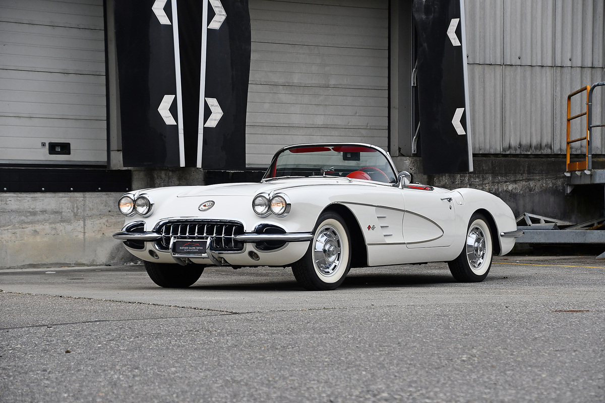 Diese schöne C1 wurde am 18. April 1960 durch die Miller Chevrolet Company in Pittsburg an den Erstbesitzer verkauft. Die vorhandenen Belege zeigen, dass dieser seiner „Vette“ bis Ende der 70er Jahre treu blieb. In den frühen 80er Jahren wurde das Cabrio für den Zweitbesitzer durch die Firma Corvette Specialists in Springfield/Virginia komplett restauriert. 1984 wechselte die C1 zu einem weiteren Besitzer in Gaithersburg/Maryland bei welchem Sie bis 2000 verblieb. Nach drei weiteren Besitzern in Maryland, Texas und Kalifornien wurde die Corvette nach Hawaii verkauft und von dort vor ca. 10 Jahren in die Schweiz importiert. Die originale Kaufrechnung von 1960 sowie viele Belege der amerikanischen Vorbesitzer sind vorhanden und belegen die Geschichte dieser tollen Corvette. Im Februar 2019 wurde der Wagen schliesslich vom letzten Besitzer übernommen, welcher die Karosserie neu lackieren, die Sitze neu beziehen und die Teppiche erneuern liess. Das optionale Hardtop sowie das weisse Verdeck befinden sich in gutem Zustand. Ausgeliefert in „Ermine White“ mit roter Kunstlederausstattung befindet sich die Corvette auch heute noch in ihrer originalen Farbkombination. Der „Matching-Numbers“ Motor läuft einwandfrei und das 3-Gang Getriebe schaltet sich gut. Die letzte MFK als Veteranenfahrzeug erfolgte im Dezember 2024.