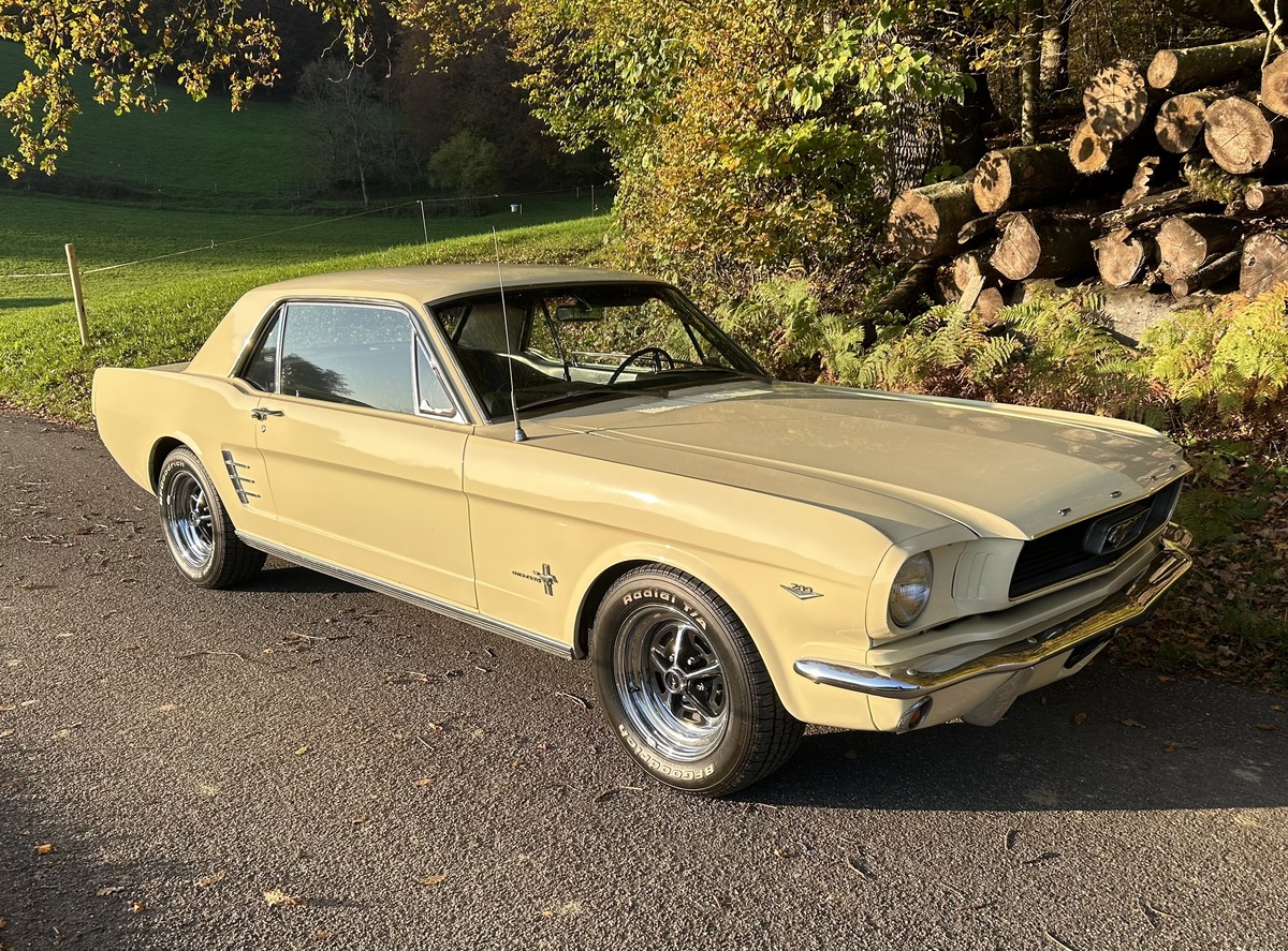 Im Frühling 1964 stellte Ford den neuen Mustang vor. Dieser wurden von Anfang an zu einem grossen Erfolg. Vor allem die ersten Versionen sind als Oldtimer beliebt. Der angebotene Wagen wurde im September 1966 erstmals zugelassen. Leider ist über seine Geschichte kaum etwas bekannt. Bis 2014 war er Belgien immatrikuliert und kam nach einer Versteigerung in die Schweiz. Im Februar 24 wurde er für den schweizer Verkehr zugelassen. Der Wagen hat Edelbrock E-Street Zylinderköpfe, Ansaugspinne und Vergaser von Edelbrock und eine Magnaflow- Auspuffanlage. Speed und Sound sind damit wie man es erwartet. Die Karosserie des Mustang ist rostfrei, aber die Lackierung nicht perfekt.