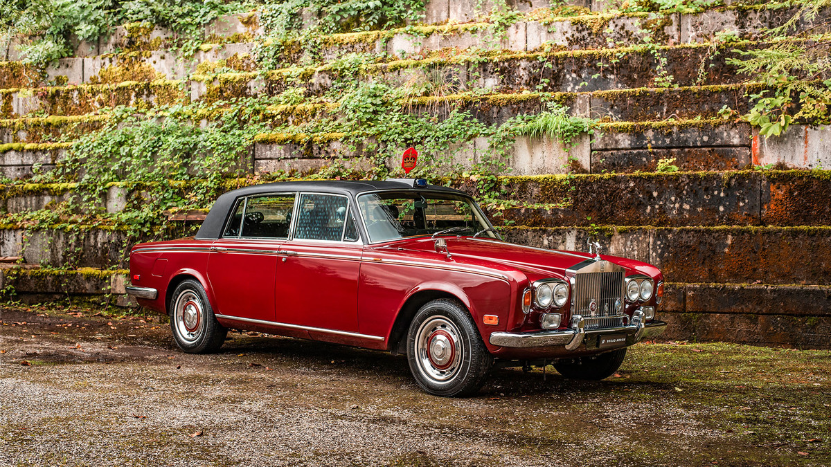 Finished in Cardinal Red with Gold fine lines and a Black vinyl top, this 1975 Silver Shadow was built to the personal specification of Her Royal Highness Princess Margaret, Countess of Snowdon. She chose a Nuella Black leather interior with Cherry Red carpeting and a Fawn Ambla headlining, complemented by Black leather trim on the door caps, window switch and door handle escutcheons. Among the many bespoke features were Sundym glass, front ventilators, vanity mirrors, Kangol seatbelts, roof-mounted reading lights, a police lamp, flag mast, illuminated roof shield, Fiat-sourced front side flashers, rear window blind, and matching trunk carpet. She also specified soft-cushioned seats and a raised floor in the rear. Additionally, the rear armrests, rear side flashers, and Duchess straps to be omitted. The matte-finished Walnut wood trim matched that of her Kensington Palace apartment.