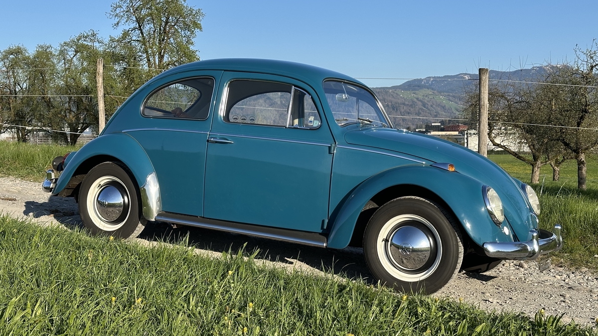 Das Auto wurde am 5.5.1964 nach Nord-Schweden ausgeliefert und hatte dort den grössten Teil seiner Zeit unter sorgfältiger Pflege verbracht. Dank nicht vorhandenem Streusalz und guter Unterbodenbehandlung – damit kennen sich die Schweden aus – ist die Karosserie vom Rost verschont geblieben. Selbst an den kritischen Stellen wie Reserveradwanne oder Motorraumdeckel findet man keinen Rost. Nachdem das Auto ein paar Jahre in der Obhut eines erfahrenen Käfer-Mechanikers in Deutschland war, wurde es Ende 2014 vom heutigen Besitzer in die Schweiz importiert und seither wenig, aber regelmässig gefahren. Der Käfer ist als Veteranenfahrzeug zugelassen (letzte Prüfung 06.06.2023) und es stehen keine Service- oder Reparaturarbeiten an.