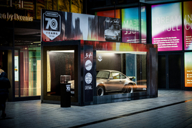 Der echte Porsche 911 Turbo 3.3 ist in einer übergrossen Matchbox-Verpackung, direkt vor der Tür des Stores, ausgestellt. Hier können die Details und Feinheiten der beiden 911er in aller Ruhe erkundet – und gleichzeitig die Marke Matchbox so gross wie nie zuvor erlebt werden.