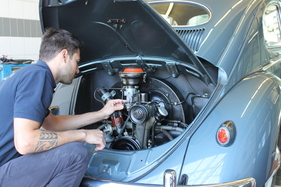 Urs Weibel und sein Bruder Andreas unterstützen die jüngere Generation nach wie vor mit ihrem Know-how. Denn, was heute Oldtimer sind, waren zu ihrer Lehrzeit noch «normale» Autos. Urs Weibel hat das Oldtimer-Fieber gepackt, als er 1985 von einem Kollegen den 48er Käfer kaufte. Heute steht bei autoweibel die vollständigste VW Käfer Sammlung der Schweiz mit Modellen von 1948 bis 1967.
