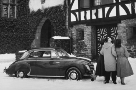 “Auf der Frankfurter Automobilausstellung zeigte die Auto Union erstmalig ihre DKW-Sonderklasse mit 900 cm3-34 PS Dreizylindermotor. Beschränkte man sich in der Anlaufzeit der von den alten DKW-Freunden seit langem erwarteten Sonderklasse auf die Lieferung eines viersitzigen Coupés mit Rundumverglasung und des von der Meisterklasse bekannten Karmann-Cabriolets, also auf zwei recht luxuriöse und dementsprechend nicht gerade billige Kleinwagenmodelle, so ist nunmehr der Zeitpunkt gekommen, mit dem Beginn der Grosserienfabrikation der Sonderklasse deren Normallimousine auf den Markt zu bringen, die von jetzt an im Mittelpunkt des DKW-Personenwagenprogramms stehen soll.”