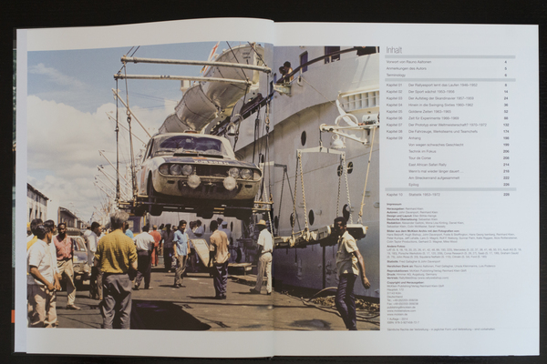 The biggest rally factory teams from the 1950s and 1960s are presented in a separate chapter, again with wonderful pictures of course: Alfa Romeo, Alpine, BMC, BMW, Citroën, DAF, DKW, Fiat, Ford, Lancia, Mercedes, Opel, Porsche, Renault, Rootes, Rover, Saab, Triumph and Volvo.