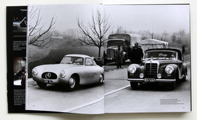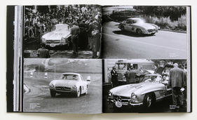 298 black and white and 111 color pictures were printed in the book. The historical black and white photos are particularly impressive and make this book a must-buy. Many of the pictures have never been seen before and show the 300 SL in racing scenes, on the boulevard but also in everyday situations.