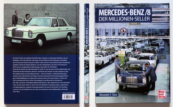 In his book Mercedes Strich-acht, Alexander F. Storz devotes almost 150 pages to the history of the "new generation" W 114/115, which came onto the market in 1968. He divides his book into eleven chapters and sheds light on the development history, model maintenance, special and export versions, particularly for the US market, and embeds the Stroke Eight in the history of Mercedes.