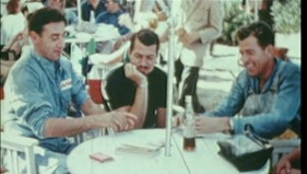 Carroll's co-driver Roy Salvadori explains in the film that Carroll Shelby called everyone together after the first of three practice blocks and surprisingly decided to take it easy on the DBR1 and only drive it again in qualifying. Instead of driving, Carroll said to Roy, "Let me teach you a good card game" and so they went to a bar and started playing Gin Rummy! The film sequences of the racing drivers playing Gin Rummy are all the more amusing when you know that the Ferrari racing cars were still doing their laps at the same time...