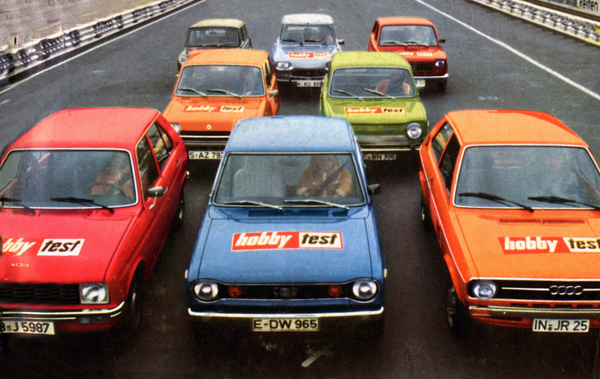 In the winter of 1974/1975, the magazine 'hobby' compared eight compact cars from five countries in a meticulous test that required driving on the Nordschleife and the participation of eight test drivers: the Audi 50 competed against the Citroën Ami Super, Datsun Cherry, Fiat 127, Innocenti Mini, Peugeot 104, Renault 5 and Simca 1000 GLE and won hands down. The Datsun Cherry came second, but this was not the only surprise in the extensive comparison test. This article re-edits the findings of that time, showing the results in detail and the vehicles in many archive photos from back then.