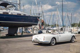 Usually, the vernacular tends to compare US cars with seafaring vehicles, calling them battleships, road cruisers or land yachts, often with a slightly disparaging undertone. The small, open-top Italian sports two-seaters, which are no longer only called "barchetta" - "little boat" - in their home country, form the opposite pole. But the nautical analogies end here, apart from model names (Chevrolet Corvette) or curious one-offs (Osi Bisiluro). As on the asphalt, there are of course not only small nutshells and huge oil tankers on the water. There are the racy, powerful sports models; the dinghy cruisers for fishing trips with the family and the group transporters for tourist tours that always hold up the traffic a little. Translated into automobiles of the 1950s, they are roughly equivalent to the Jaguar XK 120, Ford Country Squire and VW "Samba Bus".