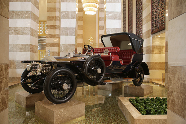 Hotels are always coming up with something to impress or entertain their guests. In the lobby of the St. Regis Hotel in Doha (Qatar), there is a Rolls-Royce Silver Ghost that is over 100 years old and has a very special history. This report summarizes the history of the night-black Rolls-Royce Silver Ghost from 1911 and shows it in some pictures.