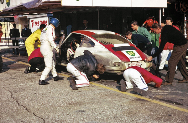 In the fall of 1967, BP Switzerland planned a world record attempt with a private Porsche over a total of four days and four nights on the steep-sided oval of the Autodromo di Monza. The four Swiss racing drivers Jo Siffert, Dieter Spörry, Rico Steinemann and Charles Vögele were to set a whole series of speed and endurance records over a total of 96 hours non-stop. The designated vehicle - a Porsche Carrera 6 The intended vehicle was Dieter Spörry's private Porsche Carrera 6 with the following characteristics: The program was as follows: First successes and then premature termination After some preparations, Siffert set off on Sunday at 12.00 noon sharp in Dieter Spörry's specially prepared Carrera 6 for the 20,000 km record drive.
