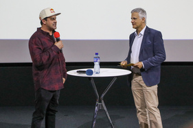 The evening was broken up by short blocks of discussion. Uli Saferling explained his interpretation of the term "cultural asset", Mat Rebaud, a motorcross and freestyle artist, chatted about his experiences, about a stunt video in the Museum of Transport and about the fact that he has a Porsche 911 but no motorcycle driver's license.