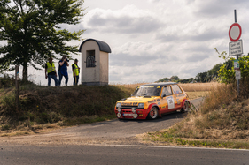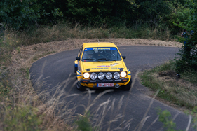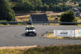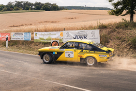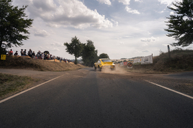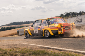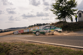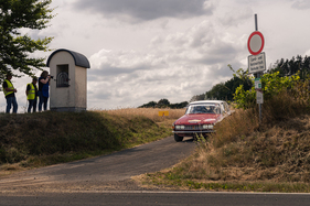 While everyone and everything was always on the move and on the move from A to B on Thursday, Friday and Saturday, spectators and team members alike gathered for the awards ceremony on the rally mile in Daun on Saturday evening. Gerard and Mike Stacey secured the glorious "Sideways Star" prize with the aforementioned stunt - which, incidentally, they unerringly reproduced on every subsequent lap. They received it from multiple German rally champion Matthias Kahle, who almost had to present the prize to himself. In a Skoda 130 RS, he drove crossways wherever he could - but without giving away even a tenth of a second.