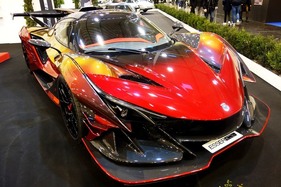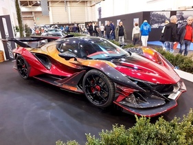 The sculpturally designed super sports car Apollo IE with its iridescent colors was also photographically appealing from every angle. Let's stay with the anniversaries for a moment. The famous "24 Hours of Le Mans" will have been held for 100 years next year. The Technik-Museum Sinsheim will be honoring this with a special exhibition and, in anticipation of this, is showing a Triumph TRS from 1961. This car is one of four original vehicles. However, this example is the reserve car, which was not used in the race.