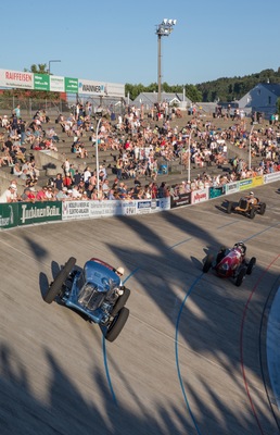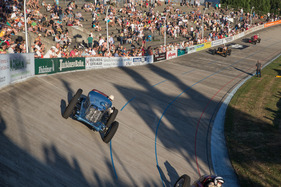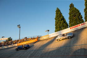 The atmosphere at the Velo-Oval is indeed very special and extraordinary. From the riders' point of view anyway. It's hard to believe that riding for three times ten minutes on such a short track (333.3 meters long) can be so much fun. Riding in a vintage sports/racing car (or on a motorcycle) is of course not quite as strenuous as on a bike, but no less challenging.