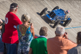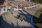 At speeds of between 90 and 120 km/h, depending on the vehicle, you can travel relatively quickly. If you get stuck in the 44.5 degree steep bend during the first lap while still riding slowly, you realize for yourself how steeply inclined the track really is. You almost feel like you're going to tip over. Centrifugal forces tug in unusual directions and change depending on the angle of inclination, requiring both man and machine to rethink.