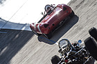 The Kaufmann brothers offered a small, unexpected highlight with a drive against each other. The Maserati 250F of Georg (the organizer of the event) did its laps in a clockwise direction, while brother Jo drove his BSA B50 T in the opposite direction.