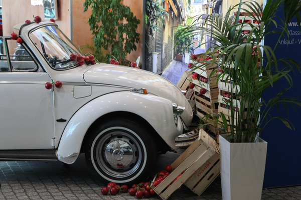 A few steps later, we passed a Triumph Italia 2000, the elegant coupé that Vignale tailored for the Italian importer on the basis of the Triumph TR3. Only a few examples still exist, one of which was on the stand of CEO Premium Oldtimer und Cabriolet Reisen.