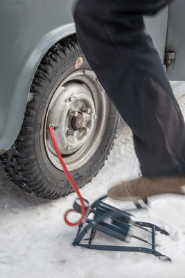 No, there wasn't an Italian from Maranello either, a completely different type of car was required for this company. The grit on the roads maltreats the bodywork, the chains hit the mudguards and the small slips can very quickly lead to cold deformation. Not for expensive and valuable cars, that's what the specially prepared winter vehicles are for. As our wheel arch was too narrow to fit chains, we carried two extra wheels on the roof so that we could change all the wheels fitted with chains in an emergency. But we were lucky with the spikes and managed all sections of the route without any problems.