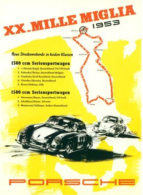On March 26 and 27, 1927, the first edition of a great race took place, which was unique in history. The Mille Migla, the 1000-mile race from Brescia, with start and finish in the Lombardy industrial city, Rome being the southern turning point of this merciless battle over Italian roads. 1600 km at racing speed, non-stop, on virtually unclosed roads, in front of millions of spectators who stayed at the side of the road for hours. The Italians hit the nail on the head when they claim - with a dash of chauvinism - that the Mille Miglia was "la corsa piü bella del mondo" (the most beautiful race in the world).