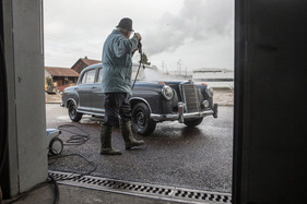 Now the "woofie" had actually spent his life "walking" past this industrial hall near Interlaken at the foot of the Eiger, Mönch and Jungfrau and had no idea what mobile classics were hidden behind the gates. Not even driven by his sense of smell, he became curious. None of the passers-by, who had repeatedly walked or driven past the building, knew that various Mercedes-Benz cars were stored there alongside the carpenter's wood and later the paint buckets of a painter. The years passed and the cars became increasingly dusty and dirty. One or two hoods were temporarily converted into "pallet racks", which of course left its mark. The odd star also found a new lover.
