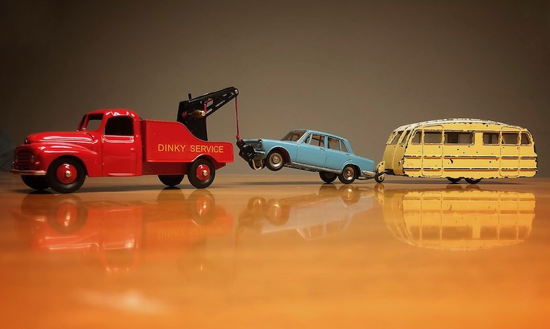 The Citroën U23 "Drageuse" is a Chinese Atlas repro, while the Simca with Caravane Hénon are original Dinky France models