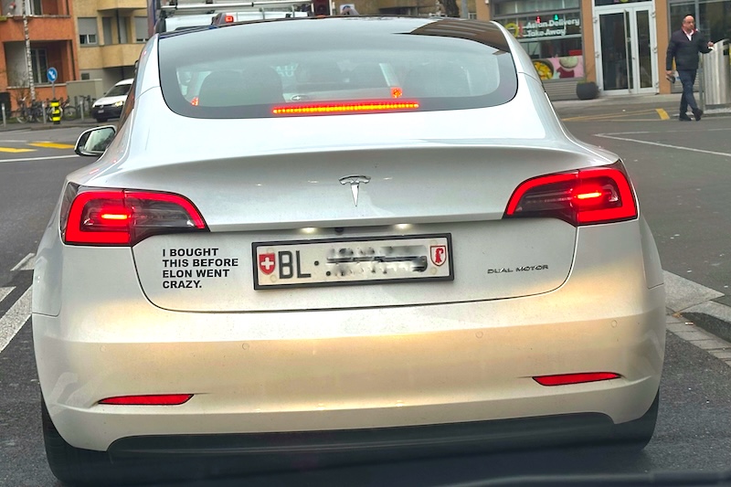 Uncool - Tesla owners try to distance themselves. A contrast to the lead image at the top: It was Tesla's PR highlight when Musk launched his personal Tesla Roadster with SpaceX into space with the puppet "Starman" on board.