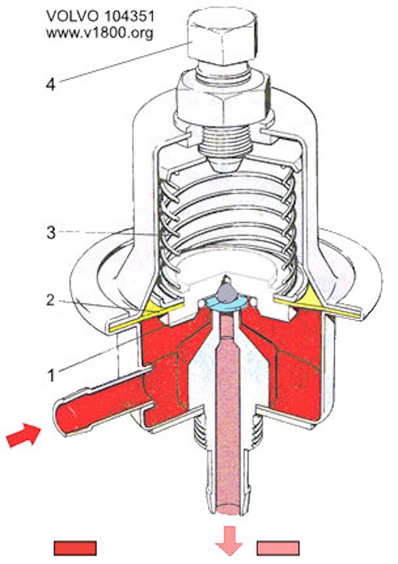 Another time, a good mechanic friend bought a Volvo P1800 Sport with Bosch D-Jetronic fuel injection. The previous owner had parted with the car after many years of annoyance, having already had the cylinder head overhauled twice at great expense. But the car still didn't run properly. Now the car was sitting in my friend's garage, causing him to frown - until someone came up with the idea of checking the fuel pressure of the injection system. The D-Jetronic works on the principle of a constantly pressurized ring line on which the injection valves are opened and closed electromagnetically. If the pressure is too high, the injection valves cannot hold it and gasoline drips into the intake manifold and the mixture becomes too rich. In fact, this pressure was twice the correct value, the pump normally delivers four bar, the pressure reducing valve - with return flow for the excess gasoline into the tank - reduces this to two bar. Although it was adjustable within a certain range, it had seized up. After replacing it - unfortunately an original part that is now extremely expensive - the car ran perfectly.