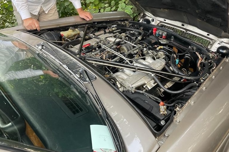 On the Jaguar XJ, the battery sits directly on the right-hand side in front of the bulkhead, a finger's width below the corner of the hood. The correct format is crucial; if it were too high, the hood would no longer close. The ingenious economy of space is due to the gigantic V12 engine, which leaves little room for maneuver.