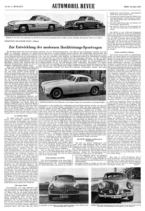 | Fahrzeuge in diesem Faksimile | Alfa Romeo Giulietta Sprint (1955) Alfa Romeo 1900 SS (1955) Mercedes-Benz 300 SL (1955) |