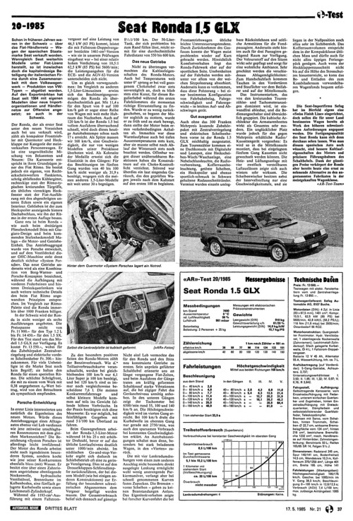| Fahrzeuge in diesem Faksimile | Seat Ronda 1.5 GLX (1985) |