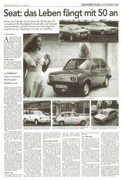 ... die Verhandlungen laufen träge, und die Spanier müssen viele Konzessionen eingehen, selbst auf politischer Seite. Die Verluste häufen sich; der Staat gibt nach und nachseine Grundsätze auf. Doch 1980 wirft der italienische Konzern das Handtuch. Probleme im eigenen Land lassen eine Kapitalverlegung ins Ausland nicht zu. Seatsteht vor dem Ruin. Es folgen schwierige Jahre, indenen die Verantwortlichen von Seat mit dem Rücken zur Wand, aber Hand in Hand und mit grossen Opfern für eine Zukunft kämpfen. Das Modell Ronda auf Basis des Fiat Ritmo bringt keine Lösung, aber einen nötigen Schritt auf dem Weg zur Unabhängigkeit und eine Überlebenschance. Der Typ Marbella, auf Panda-Basis, stösst in die gleiche Richtung. Mit Volkswagen Ende 1982 unterschreibt Seat einen Vertrag zum Bau der VW Polo, Passat und Santana in Spanien, der erste Schritt in Richtungeiner neuen Zusammenarbeit ist getan. Es dauert noch bis 1986, bis Seat endgültig zum Volkswagen- Konzern gehört. In der Zwischenzeit entsteht der Ibiza, bei dem grosse Leute ihr Bestes geben: Giugiaro im Design, Porsche bei den Motoren,Karmann mit der Karosserie und Seat bei der Produktion. Man spricht das erste Mal von mediterranen Linien, einer Designrichtung, die heute an Aktualität gewinnt. Der Rest in Stichworten: 1986 zieht sich Fiat definitiv aus Seat zurück. Volkswagen braucht noch bis 1991, um aus ...
