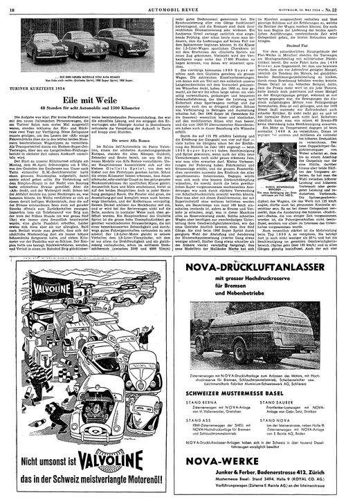 | Fahrzeuge in diesem Faksimile | Alfa Romeo Giulietta Sprint (1954) Alfa Romeo 1900 Super (1954) |