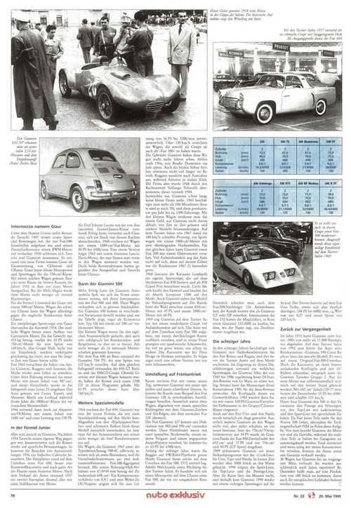... Teile in Italien bei Garagisten zusammengekaufi werden. Total restauriert und wenn nötig mit neuen Karosserieteilen versehen, können die Autos somit mit Garantie verkauft werden 30 Wagen hat Giannini bis im vergangenen März verkauft: Sie wurden ausschliesslich nach Japan exportiert! BisDezember hofft man, auf eine Produk tion von 100 Stück zu kommen, damit auch die europäischen Liebhaber bedientjwerden können. II Nr. 22 Qi 25. Mai 199E Die achtziger Jahre In den achtziger Jahren beschäftigte sichGiannini mit Turbodieselmotoren für den Fiat Ritmo und Regata, und dies bevor die Turiner damit auf dem Markt erschienen. Im Gegenzug zu diesen Dieselfahrzeugen entstand ein wirklicher Sportwagen, der Giannini Alba, der von 1983 bis 1986 regelmässig beim 24-Stunden-Rennen von Le Mans zu sehen war Ing. Stirano hatte das Monocoque dieserKonstruktion 1981 für die Imsa-Rennen entworfen. Als Kraftquelle diente einCosworth-Motor. 1983 wurden diese Autos mit einem 320-PS-Giannini-Vierzylinder-Turbomotor in der Gruppe-G-Junior-Klasse eingesetzt. Auch auf den Fiat Uno und den Panda wurde natürlich ein Auge geworfen. Äusserlich änderte Giannini an den Wagennicht viel, aber dafür erhielten sie ein neues Interieur. Statt des 770-cm 3 -Vierzylindermotors mit 34 PS wurde im Giannini-Panda der Fiat-500-Zweizylinder mit652 cm 3 und 37 PS und mit 756 cm 3 und 40 PS (GT Sport) ...