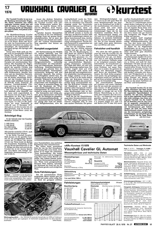 | Fahrzeuge in diesem Faksimile | Vauxhall Cavalier GL Aut. (1978) |