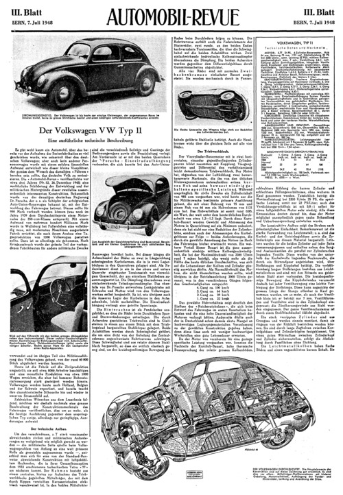 ... wicklung des Fahrzeuges betraut. Dieses sollte für 990 Mark verkauft werden können (was noch im Jahre 1939 dem Durchschnittspreis eines Motorrades der 350-ccm-Klasse entsprach). Mit einem Aufwand von mehreren hundert Millionen Mark wurde in Wo,lfsburg bei Fallersieben eine vollständig neue, mit modernsten Maschinen ausgerüstete Fabrik erriebtet, die nach ihrem Ausbau eine Tagesproduktion von 1000 Volkswagen gestatten sollte. Dazu ist es allerdings nie gekommen. Nach Kriegsausbruch wurde der grösste Teil der vorhandenen Fabrikbauten für andere militärische Zwecke Blick auf den Fuhrersitz mit den beiden grossen Ablegekastenneben dem Instrumententeil. Dieser umfasst Geschwindigkeitsmesser, Kontrollampe für Richtungsanzeiger (rot), Scheinwerfer-Kontrollampe (blau), Oeldruckkontrollampe (grün) sowie die nötigen Schalter. Rechts davon Platz für den Lautsprechereines Radio-Apparates. verwendet und im übrigen Teil eine Militärausführung des Volkswagens gebaut, von der rund 60 000 Stück abgeliefert werden konnten. Heute ist die Fabrik auf die Zivilproduktion umgestellt; sie soll etwa 8000 Arbeiter beschäftigen und eine monatliche Produktion von etwa 1000 Wagen erreichen, die aber bei besserer Rohmaterialversorgung stark gesteigert werden könnte. Volkswagen werden heute nach Holland, Belgien und der Schweiz exportiert, und bereits taucht ihre charakteristische Silhouette ...