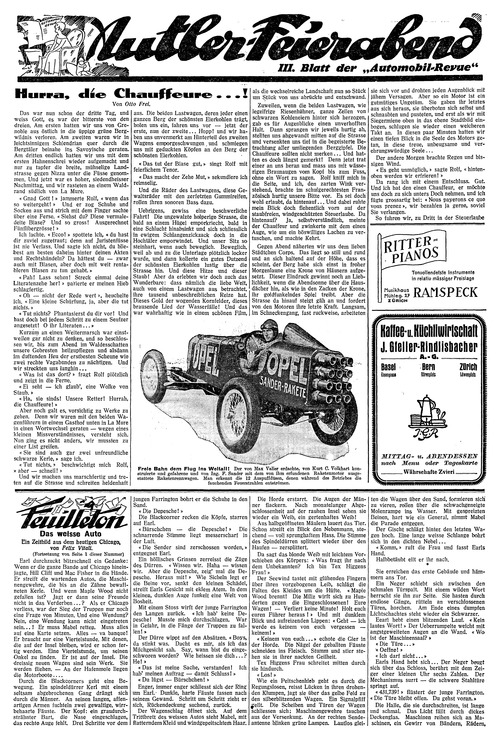 ... Da hättest du — zwar auch mit Blasen, aber doch mit weit rentableren Blasen zu tun gehabt.» «Pah! Lass sehen! Streck einmal deine Literatenzehe her! » parierte er meinen Hieb schlagfertig. « Oh — nicht der Rede wert», heuchelte ich. «Eine kleine Schürfung, ja, aber die tut nichts.» « Tut nichts? Phantasierst du dir vor! Und hast doch bei jedem Schritt zu einem Seufzer angesetzt! O ihr Literaten ...» Kurzum an einen Weitermarsch war einstweilen gar nicht.zu denken, und so beschlossen wir, bis zum Abend im Waldesschatten unsere Gebresten heilzupflegen und alsdann im duftenden Heu der erstbesten Scheune wie zwei rechte Vagabunden zu nächtigen. Und wir streckten uns langhin... « Was ist das dort? > fragt Rolf plötzlich und zeigt in die Ferne. «Ei seht — ich glaub', eine Wolke von Staub.» «Ha, sie sinds! Unsere Retter! Hurrah, die Chauffeure!» Aber noch galt es, vorsichtig zu Werke zu gehen. Denn wir waren mit den beiden Wagenführern in einem Gasthof unten in La Mure in einen Wortwechsel geraten — wegen eines kleinen Missverständnisses, versteht sich. Nun ging es nicht anders, wir mussten zu einer List greifen. «Sie sind auch gar zwei unfreundliche schwarze Kerle, » sage ich. «Tut nichts, » beschwichtigt mich Rolf, ;« aber — schnell! » Und wir machen uns marschfertig und treten auf die Strasse und schreiten heldenhaft aus. Die beiden Lastwagen, deren jeder einen ...
