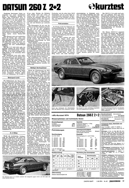 | Fahrzeuge in diesem Faksimile | Datsun 260 Z 2+2 (1974) |