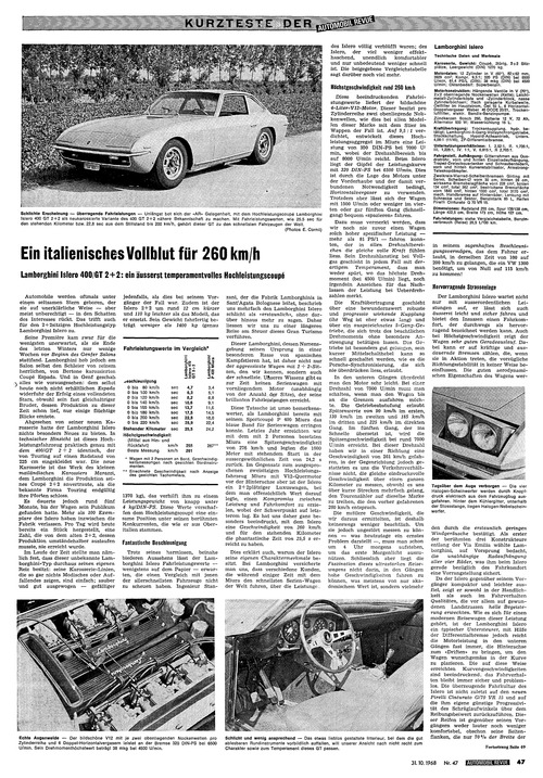 | Fahrzeuge in diesem Faksimile | Lamborghini Islero 400/GT 2+2 (1968) |