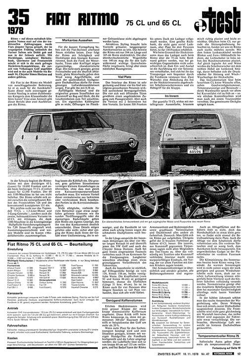 | Fahrzeuge in diesem Faksimile | Fiat Ritmo 75 CL (1978) Fiat Ritmo 65 CL (1978) |