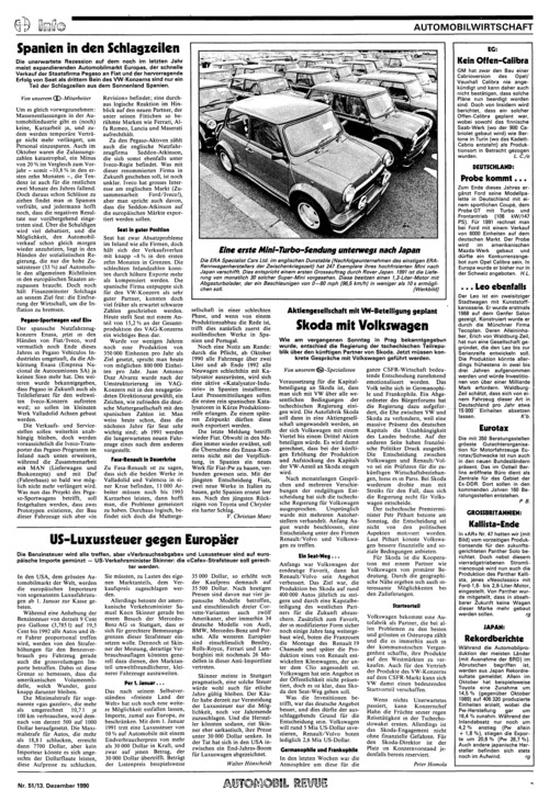 ... Benzinsteuer wird alle treffen, aber «Verbrauchsabgabe» päische Importe gemünzt — US-Verkehrsminister Skinner: die ter werden. Von unserem CSD-Mitarbeiter Um es gleich vorwegzunehmen: Massenentlassungen in der Automobilindustrie gibt es (noch) keine, Kurzarbeit ja, und zudem werden temporäre Verträ- ge nicht mehr verlängert, um Personal einzusparen. Auch im Oktober waren die Zulassungszahlen katastrophal, ein Minus von 20 % im Vergleich zum Vorjahr - somit -10,8 % in den ersten zehn Monaten -, die Tendenz ist auch für die restlichen zwei Monate des Jahres fallend. Doch daraus schon Schlüsse zu ziehen findet man in Spanien verfrüht, und jedermann hofft noch, dass die negativen Resultate nur vorübergehend eingetreten sind. Über die Schuldigen wird viel debattiert, und die Möglichkeit, den Automobilverkauf schon gleich morgen wieder anzuheizen, liegt in den Händen der sozialistischen Regierung, die nur die hohe Zusatzsteuer (33 %) auf Automobile den allgemeinen Richtlinien in den europäischen Staaten anzupassen braucht. Doch noch hält Finanzminister Solchaga an seinem Ziel fest: die Einfrierung der Wirtschaft, um die Inflation zu bremsen. Der spanische Nutzfahrzeugkonzern Enasa, jetzt in den Händen von Fiat/Iveco, wird vermutlich noch Ende dieses Jahres in Pegaso Vehiculos Industriales umgetauft, da die Abkürzung Enasa (Empresa National de ...