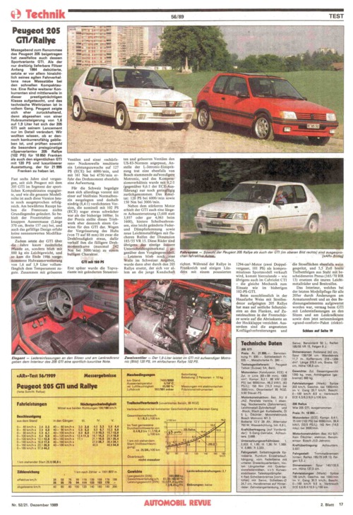 Fahrzeuge in diesem Faksimile | Peugeot 205 GTI/Rallye (1989) |