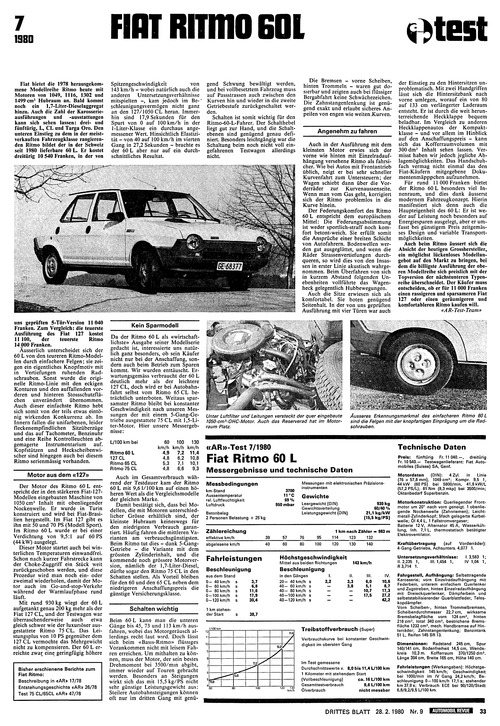 | Fahrzeuge in diesem Faksimile | Fiat Ritmo 60L (1980) |