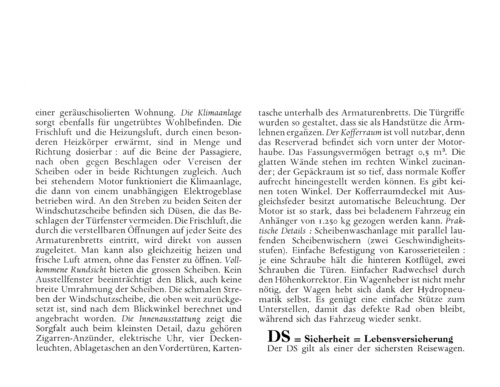 | Fahrzeuge in diesem Faksimile | Citroën DS 19 (1967) Citroën DS 21 (1967) |