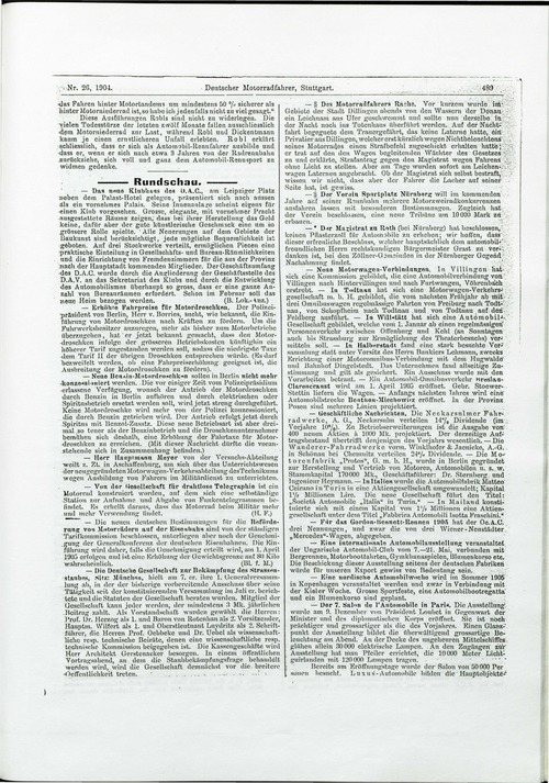 ... der gute künstlerische Geschmack eine ürh so grössere Rolle spielte. "Alle Neuerungen auf dem Gebiete der Baukunst sind berücksichtigt, jede mögliche Bequemlichkeit ist geboten. Auf drei Stockwerke verteilt, ermöglichen Piecen eine praktische Einteilung in Gesellsch'aftsund Bureau-Räumlichkeiten und die Einrichtung von Fremdenzimmern für die aus der Provinz jnach der Hauptstadt kommenden Mitglieder. Der Geschäfts um fang -des D.A.C. wurde durch die Ausrliederung der Geschäftsstelle des D.A.V. an das Sekretariat des Klubs und durch die Entwicklung •des Automobilismus überhaupt so gross, dass er eine ganze Anzahl von Bureauräumen erfordert. Schon im Februar soll das neue Heim bezogen werden. (B. Lok.-Anz.) — Erhöhte Fahrpreise für Motordroschken. Der Polizeipräsident von Berlin, Herr v. Borries, Sucht, wie bekannt, die Einführung von Motordroschken nach Kräften zu fördern. Um die Fuhrwerksbesitzer anzuregen, mehr als bisher zum Motorbetriehe überzugehen, hat1 er jetzt bekannt gemacht, dass den Motor- -droschken infolge der grösseren Betriebskosten künftighin ein •höherer Tarif zugestanden werden soll, sodass die niedrigste Taxe -dem Tarif 11 der übrigen Droschken entsprechen würde. (Es darf "bezweifelt werden, ob eine Fahrpreiserhöhung geeignet ist, die Ausbreitung der Motordroschken zu fördern). — Neue Ben/.in-Motordroschk*n sollen in ...