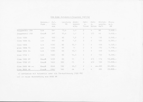 | Fahrzeuge in diesem Faksimile | Glas 3000 V8 Coupé (1967) Glas 2600 V8 Coupé (1967) Glas 1300 GT (1967) |